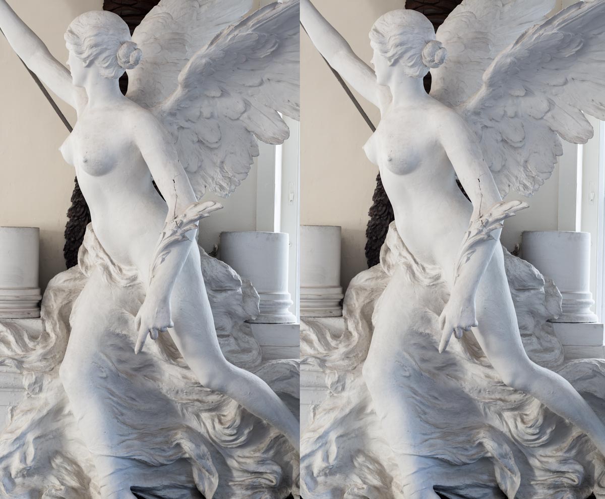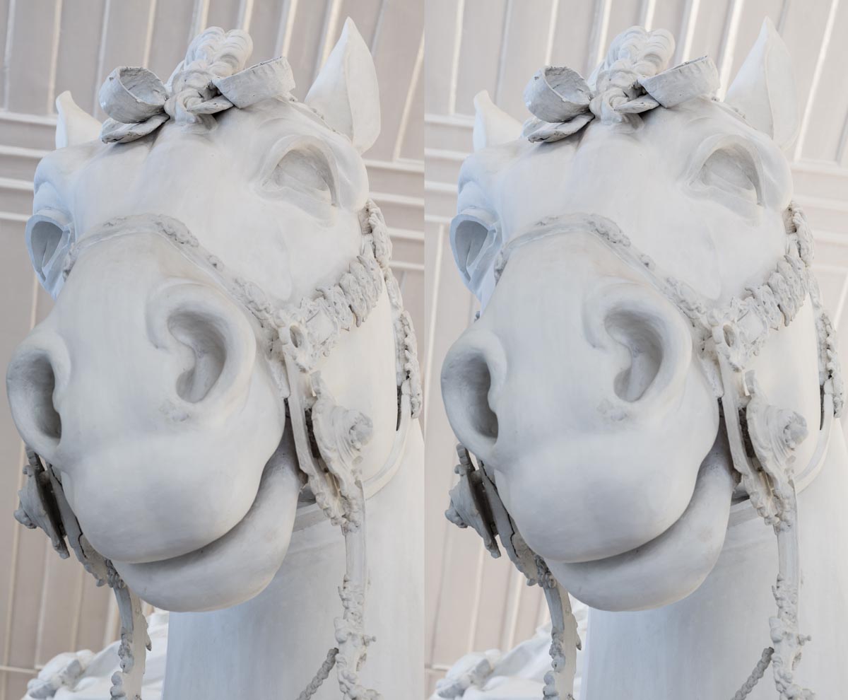 O termo “Skenografia” refere-se a uma prática de pintura antiga. Da Grécia Antiga chegou-nos a ideia da escultura como possibilidade de representação, representação que no seu estado perfeito ganha vida, torna-se humana. Os Gregos também desenvolveram um sistema de re-apresentação, de tradução. Das três dimensões em duas, na pintura de cenografia, designada “Skenografia”. Ao contrário da escultura, que podia aspirar a ser vida, a Skenografia no seu auge poderia ser considerada uma cópia, uma ilusão, uma mimése, sem possibilidade de humanidade. Para esta mostra proposta por António Guerra, pensei num trabalho que permitisse explorar a sugestiva e aberta ideia de ilusão no âmbito da fotografia. Recorrendo a métodos da fotografia do século XIX proponho assim fotografar possibilidades de perfeição (estátuas) e re-apresentar. Reapresentá-las de forma ilusória, em pares estereoscópicos.